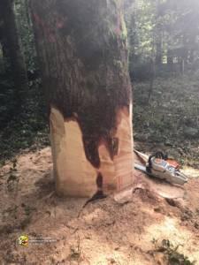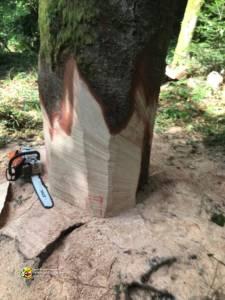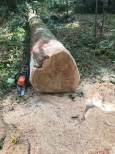 Nos sapeurs débitent le bois une fois au sol. Même si l’arbre une fois couché peut paraitre inoffensif, il en est tout autre.