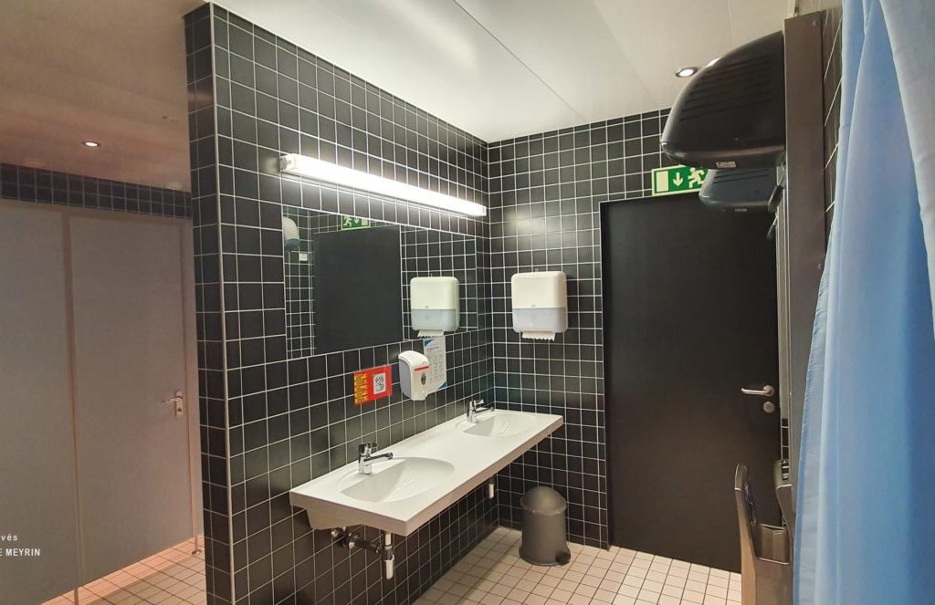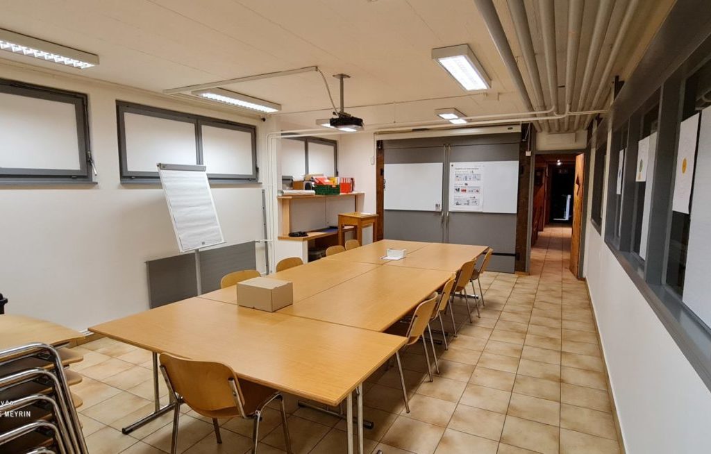 Elle se trouve en face du centre commercial et du Forum Meyrin, et sous la piscine et la salle de gymnastique du Livron.