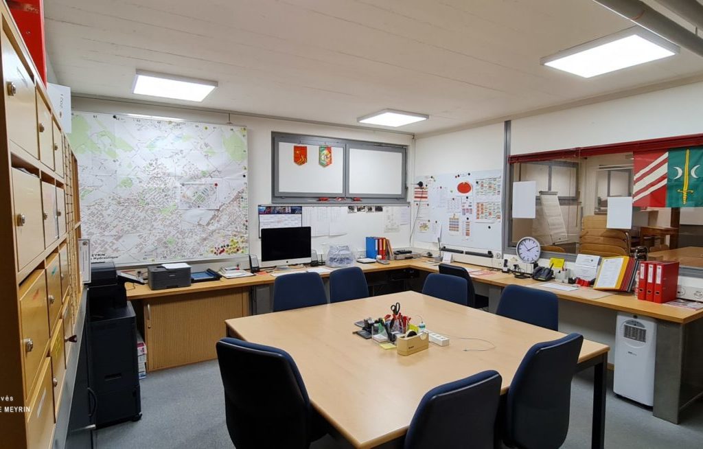 La caserne du service du feu de Meyrin (Genève/Suisse) se trouve au 23 avenue de Feuillasse.