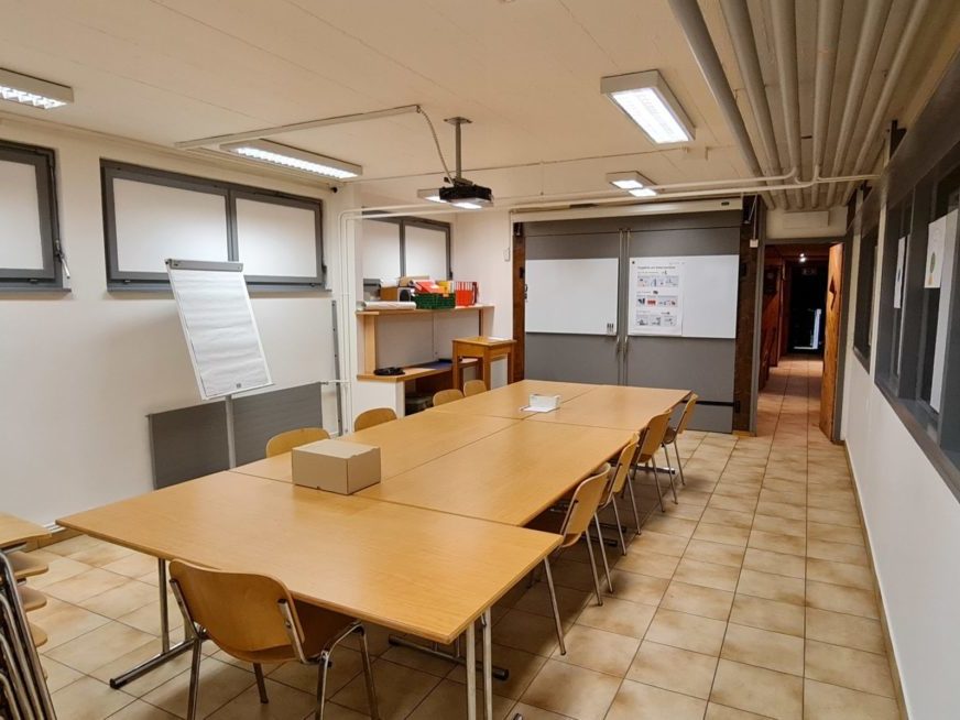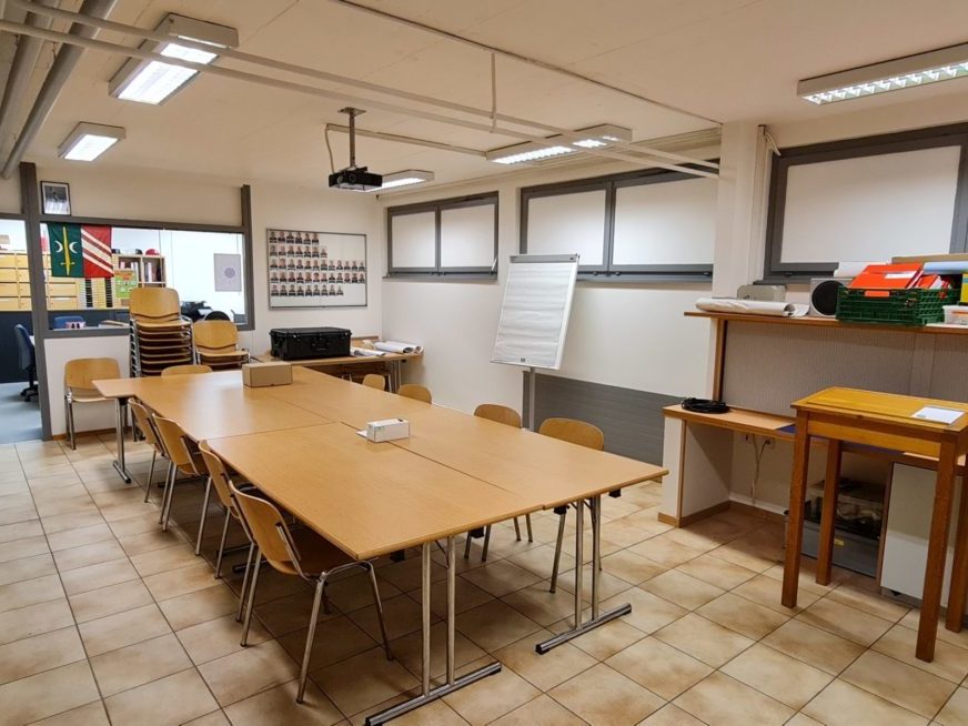 Elle se trouve en face du centre commercial et du Forum Meyrin, et sous la piscine et la salle de gymnastique du Livron.